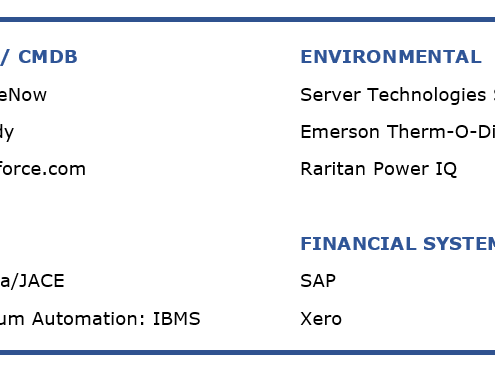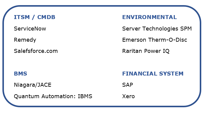 DCIM data is the missing element within an ITSM framework. ITSM usually relies on discovered or manually updated data, increasing the business risk of incorrect decision making. Cormant-EDIS delivers a solution for low-cost, configurable integration.