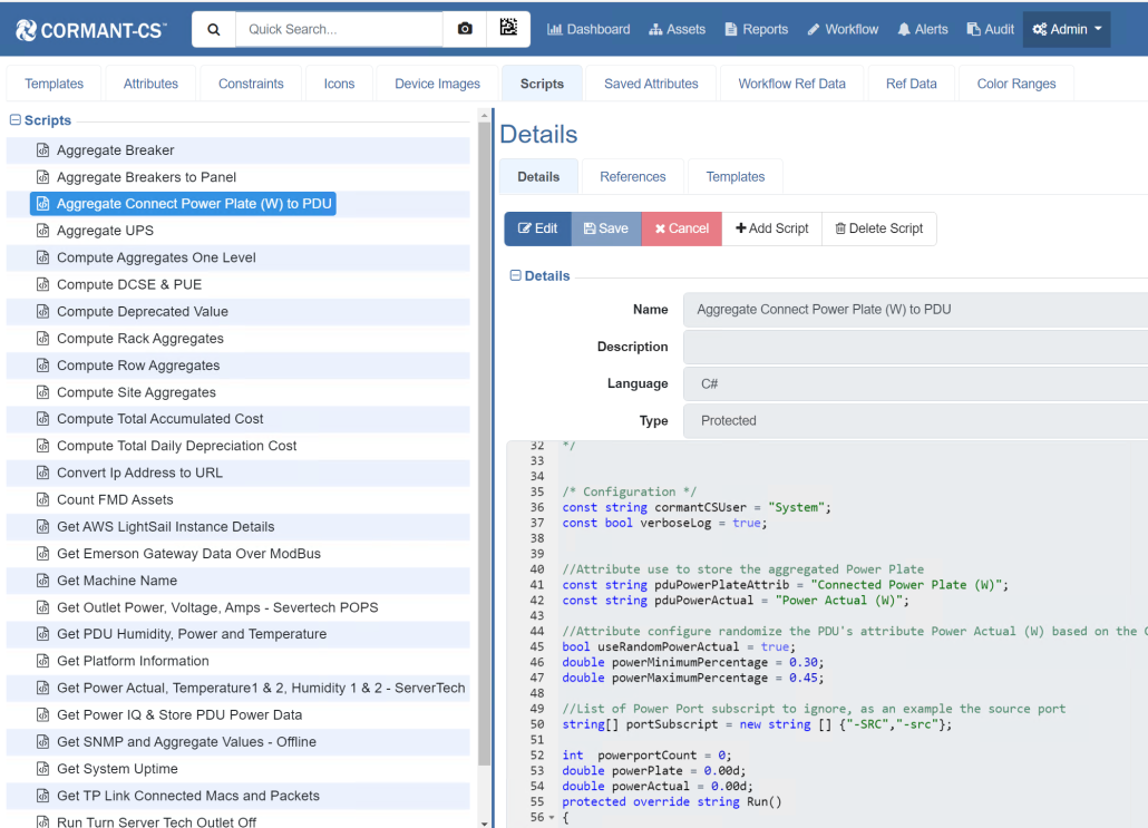 Cormant-CS is able to utilise scripts to retrieve information periodically. This can be used when you need to monitor temperature and power in your data centre or computer room periodically. Your data centre or computer room contains aggregation of components such as networking and storage hardware placed in racks.